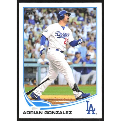This is a 2013 Topps Adrian Gonzalez baseball card. The card is #228 and pictures show condition.