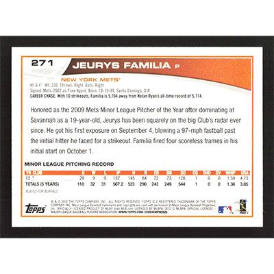 This is a 2013 Topps Jeurys Familia baseball card. The card is #271 and pictures show condition.