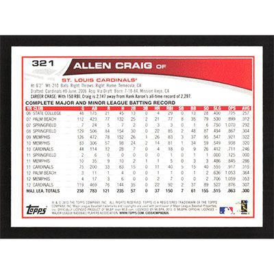 This is a 2013 Topps Allen Craig baseball card. The card is #321 and pictures show condition.
