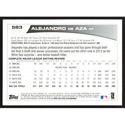 This is a 2013 Topps Alejandro De Aza baseball card. The card is #583 and pictures show condition.