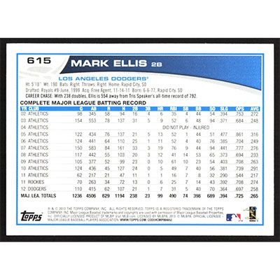 This is a 2013 Topps Mark Ellis baseball card. The card is #615 and pictures show condition.