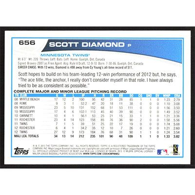 This is a 2013 Topps Scott Diamond baseball card. The card is #656 and pictures show condition.