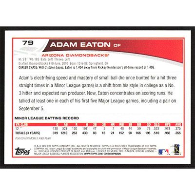 This is a 2013 Topps Adam Eaton baseball card. The card is #79 and pictures show condition.