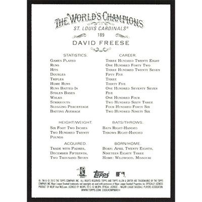 This is a 2013 Topps Allen & Ginter David Freese baseball card. The card is #189 and pictures show condition.