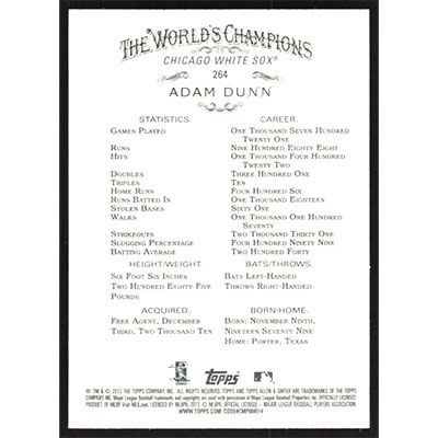 This is a 2013 Topps Allen & Ginter Adam Dunn baseball card. The card is #264 and pictures show condition.