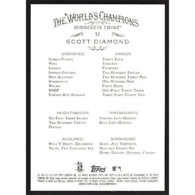 This is a 2013 Topps Allen & Ginter Scott Diamond baseball card. The card is #52 and pictures show condition.
