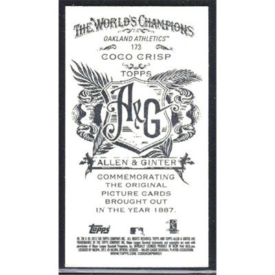 This is a 2013 Topps Allen & Ginter Mini A & G Back Coco Crisp baseball card. The card is #173 and pictures show condition.