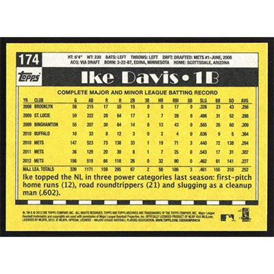 This is a 2013 Topps Archives Ike Davis baseball card. The card is #174 and pictures show condition.