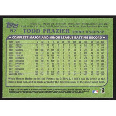 This is a 2013 Topps Archives Todd Frazier baseball card. The card is #57 and pictures show condition.