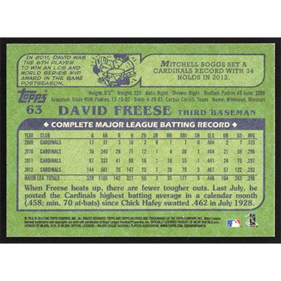 This is a 2013 Topps Archives David Freese baseball card. The card is #63 and pictures show condition.