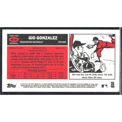 This is a 2013 Topps Archives Mini Tall Boys Gio Gonzalez baseball card. The card is #MT-GG and pictures show condition.
