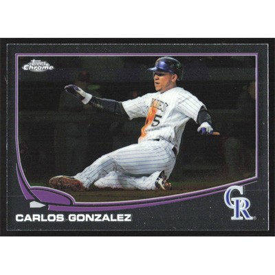 This is a 2013 Topps Chrome Carlos Gonzalez baseball card. The card is #131 and pictures show condition.