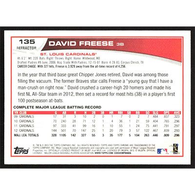 This is a 2013 Topps Chrome Orange Refractors David Freese baseball card. The card is #135 and pictures show condition.