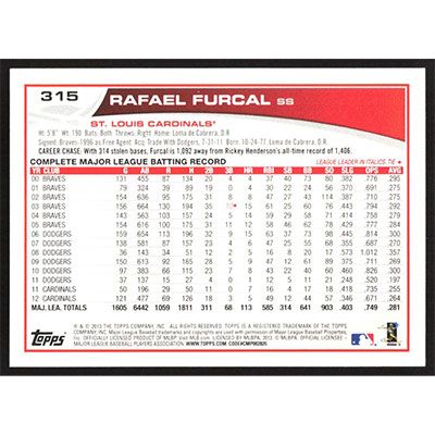 This is a 2013 Topps Emerald Rafael Furcal baseball card. The card is #315 and pictures show condition.