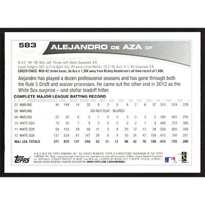 This is a 2013 Topps Emerald Alejandro De Aza baseball card. The card is #583 and pictures show condition.