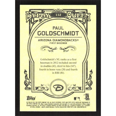 This is a 2013 Topps Gypsy Queen Paul Goldschmidt baseball card. The card is #112 and pictures show condition.