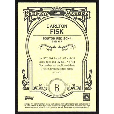 This is a 2013 Topps Gypsy Queen Carlton Fisk baseball card. The card is #130 and pictures show condition.
