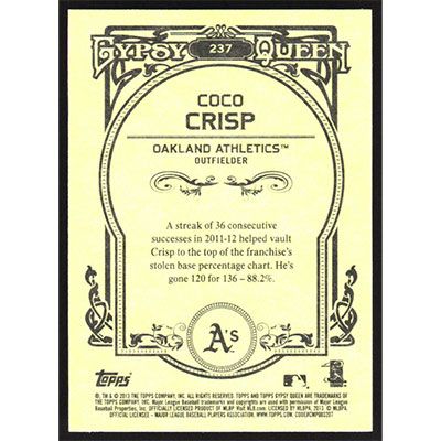 This is a 2013 Topps Gypsy Queen Coco Crisp baseball card. The card is #237 and pictures show condition.