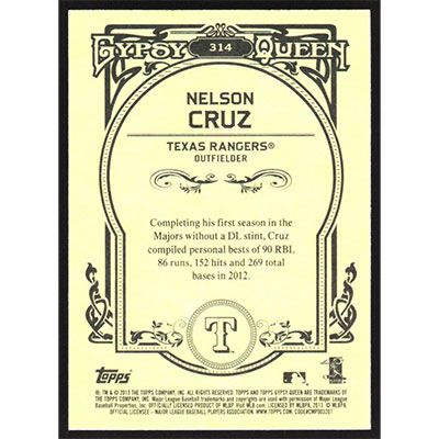 This is a 2013 Topps Gypsy Queen Nelson Cruz baseball card. The card is #314 and pictures show condition.