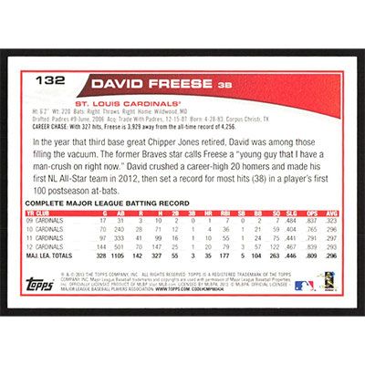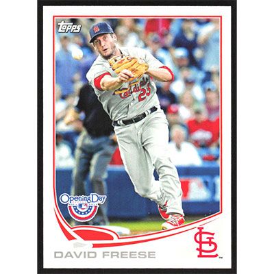 This is a 2013 Topps Opening Day David Freese baseball card. The card is #132 and pictures show condition.