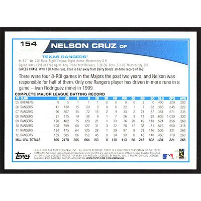 This is a 2013 Topps Opening Day Nelson Cruz baseball card. The card is #154 and pictures show condition.