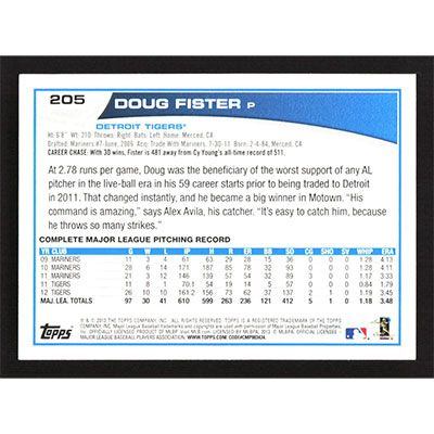 This is a 2013 Topps Opening Day Doug Fister baseball card. The card is #205 and pictures show condition.