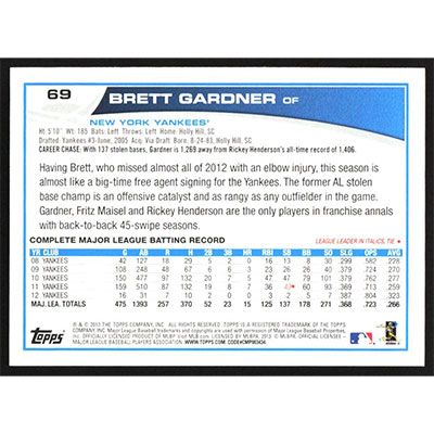 This is a 2013 Topps Opening Day Brett Gardner baseball card. The card is #69 and pictures show condition.