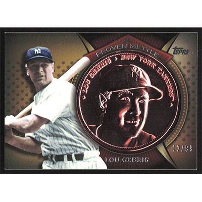 This is a 2013 Topps Proven Mettle Coins Copper Lou Gehrig baseball card. The card is #PMC-LG and pictures show condition. This card is limited; #'d 12/99.