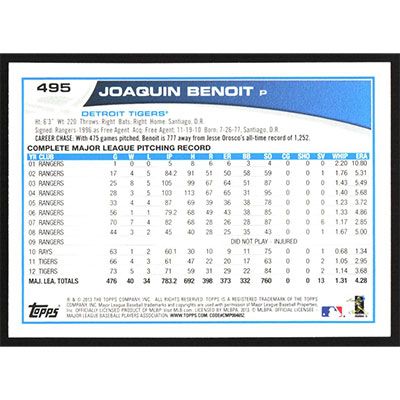 This is a 2013 Topps Target Red Joaquin Benoit baseball card. The card is #495 and pictures show condition.