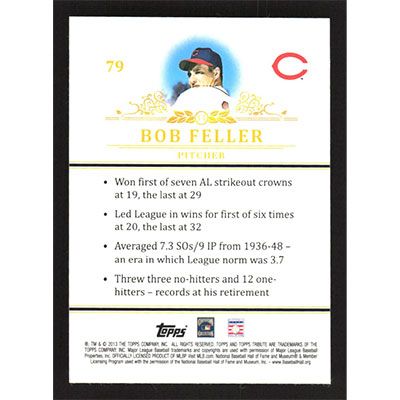 This is a 2013 Topps Tribute Bob Feller baseball card. The card is #79 and pictures show condition.