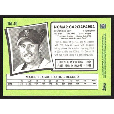 This is a 2013 Topps Update '71 Minis Nomar Garciaparra baseball card. The card is #TM-40 and pictures show condition.