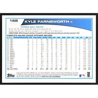 This is a 2013 Topps Wal-Mart Blue Kyle Farnsworth baseball card. The card is #168 and pictures show condition.