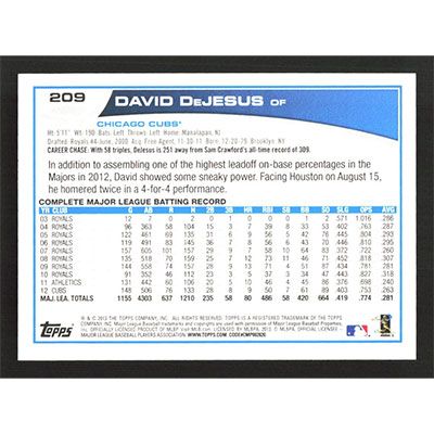 This is a 2013 Topps Wal-Mart Blue David DeJesus baseball card. The card is #209 and pictures show condition.