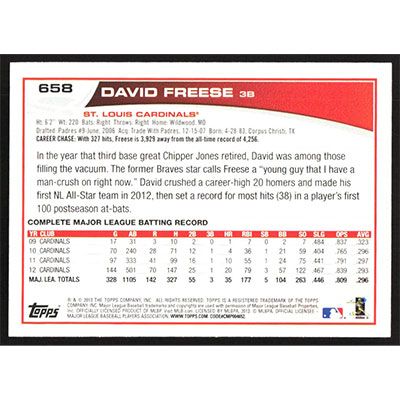 This is a 2013 Topps Wal-Mart Blue David Freese baseball card. The card is #658 and pictures show condition.
