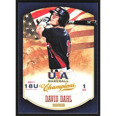 This is a 2013 USA Baseball Champions David Dahl baseball card. The card is #115 and pictures show condition.