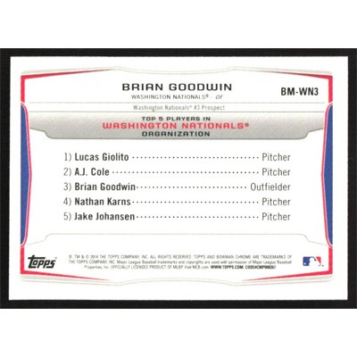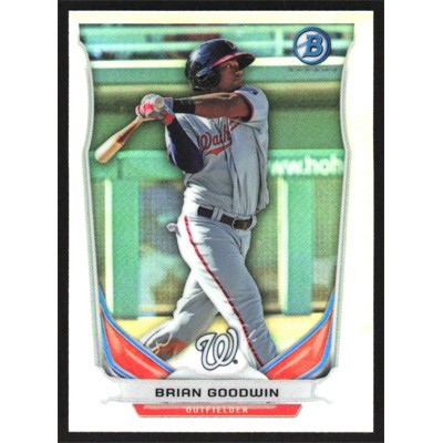 This is a 2014 Bowman Chrome Bowman Scout Top 5 Mini Refractors Brian Goodwin baseball card. The card is #BM-WN3 and pictures show condition.