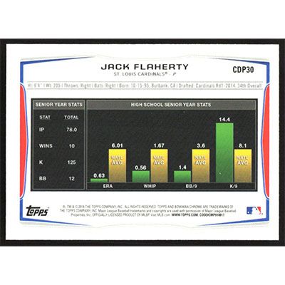 This is a 2014 Bowman Chrome Draft Jack Flaherty baseball card. The card is #CDP30 and pictures show condition.