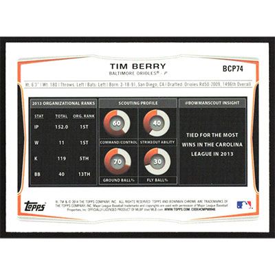 This is a 2014 Bowman Chrome Prospects Tim Berry baseball card. The card is #BCP74 and pictures show condition.