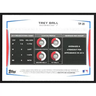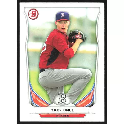 This is a 2014 Bowman Draft Top Prospects Trey Ball baseball card. The card is #TP-20 and pictures show condition.