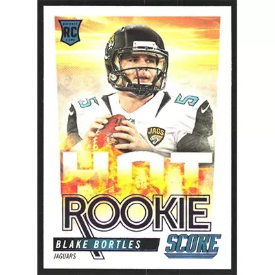 This is a 2014 Score Hot Rookies Blake Bortles football card. The card is #HR3 and pictures show condition.