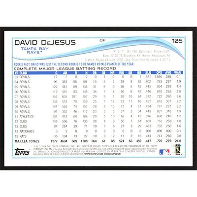 This is a 2014 Topps David DeJesus baseball card. The card is #126 and pictures show condition.