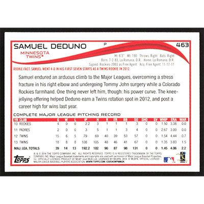 This is a 2014 Topps Samuel Deduno baseball card. The card is #463 and pictures show condition.
