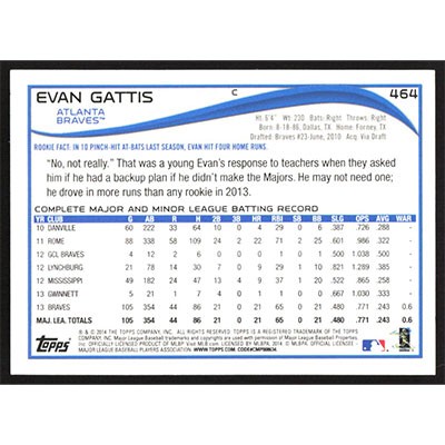 This is a 2014 Topps Evan Gattis baseball card. The card is #464 and pictures show condition.