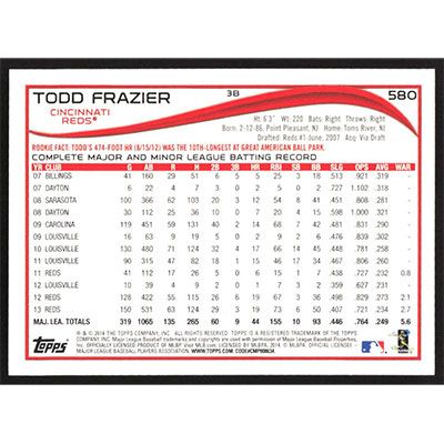 This is a 2014 Topps Todd Frazier baseball card. The card is #580 and pictures show condition.
