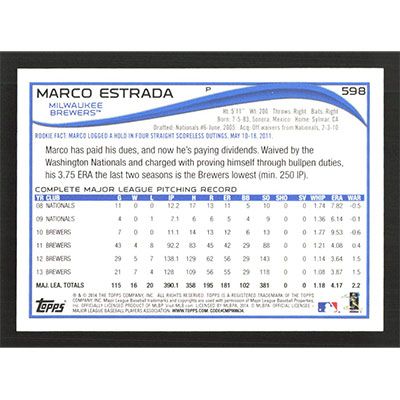 This is a 2014 Topps Marco Estrada baseball card. The card is #598 and pictures show condition.