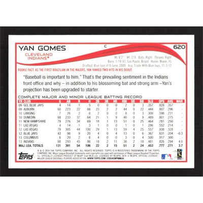 This is a 2014 Topps Yan Gomes baseball card. The card is #620 and pictures show condition.