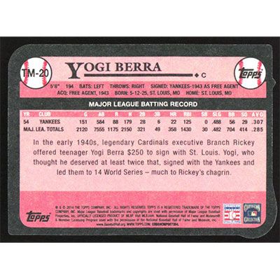 This is a 2014 Topps '89 Die Cut Minis Yogi Berra baseball card. The card is #TM-20 and pictures show condition.