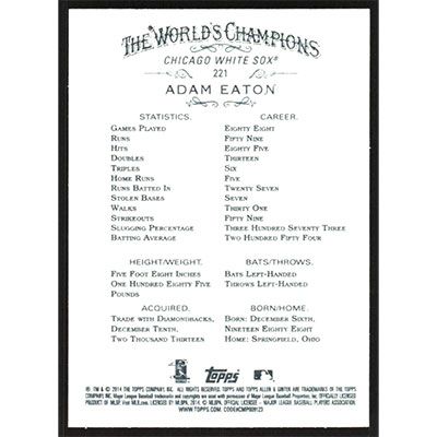 This is a 2014 Topps Allen & Ginter Adam Eaton baseball card. The card is #221 and pictures show condition.