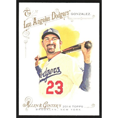 This is a 2014 Topps Allen & Ginter Adrian Gonzalez baseball card. The card is #74 and pictures show condition.
