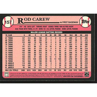 This is a 2014 Topps Archives Rod Carew baseball card. The card is #157 and pictures show condition.